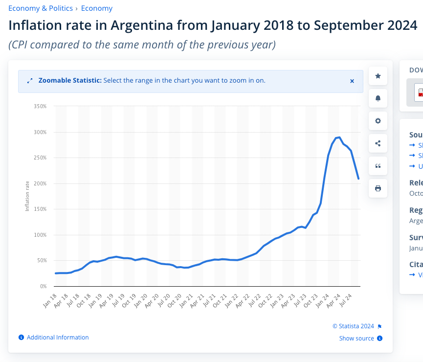Source: https://www.statista.com/statistics/1320016/monthly-inflation-rate-argentina/