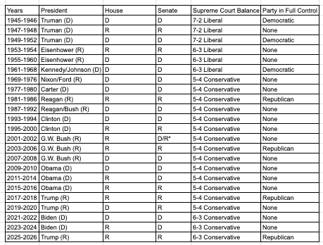 And importantly for conservatives, never with a 6-3 majority in Supreme Court Justices.