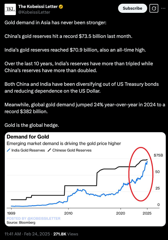 Gold is arguably the most important Geopolitical asset to watch - as it contends with US Treasury markets for the premier reserve asset status.