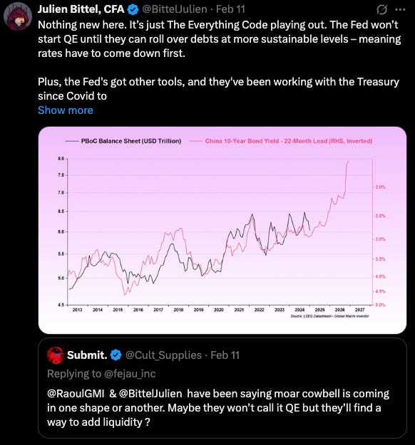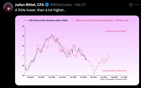 Longer term these Liquidity inputs will drive assets, but first we need the US Fiscal spending, DOGE, and the Mar-a-lago accord to work whatever magic they hope to: