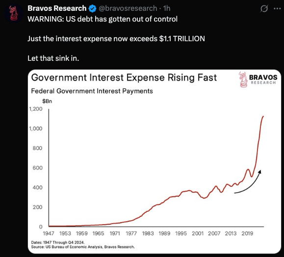 The US share of that global debt is being refinanced at higher interest rates leading to an explosion in the US Interest Rate Expense: