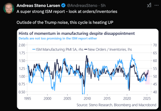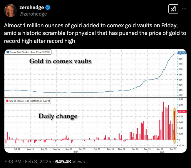 And along those lines, if I trusted a US Gold miner to not screw up an amazing situation, I might buy it too - as it would be the natural arbitrage between a high gold price (priced in a stronger dollar!), cheap energy (which could get cheaper if economic activity flags), a new deregulation focused administration, a AI fueled productivity boom, and the great sucking sound at the COMEX.