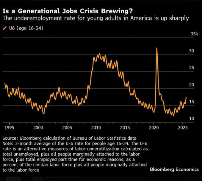 So far the AI story has been a mixed bag for employment, with many seeing a link between deteriorating job prospects for new graduates due to displacement effects from AI.